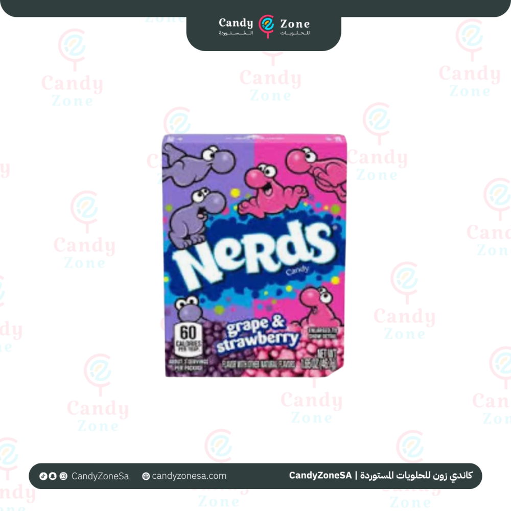 استمتع بتجربة مزدوجة من الطعم والمرح مع حلوى نيردز! حلوى صغيرة الحجم لكن مليئة بالنكهة الكبيرة التي تنفجر في فمك بمجرد تذوقها، يجتمع فيها المذاق الحلو للفراولة مع نكهة العنب الغنية لتمنحك مزيجًا لذيذًا يصعب مقاومته، مغامرة لونية ومذاقية تمنحك جرعة من السعادة في كل حفنة صغيرة!